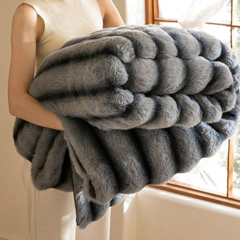 Premium microfiber blends faux rabbit fur, this blanket offers an irresistibly silky-smooth touch. Lightweight yet warm, it delivers cozy comfort without feeling heavy.