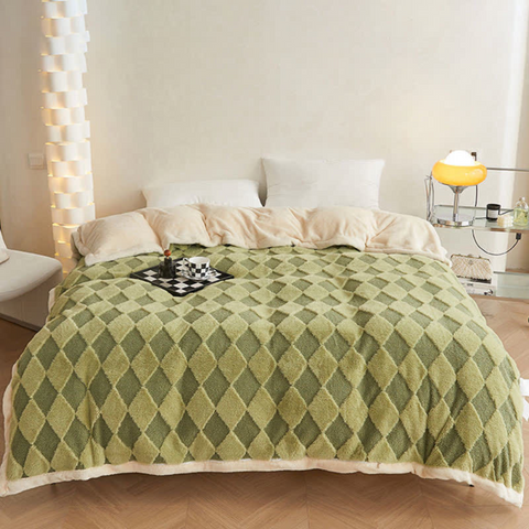 This Soft Diamond Pattern Comfort Blanket is made from plush teddy velvet and thick alpaca wool, keeping you warm and cozy. Versatile enough for use as a sofa throw or bedspread, it’s perfect for snuggling up. It also makes a thoughtful gift for friends and family!