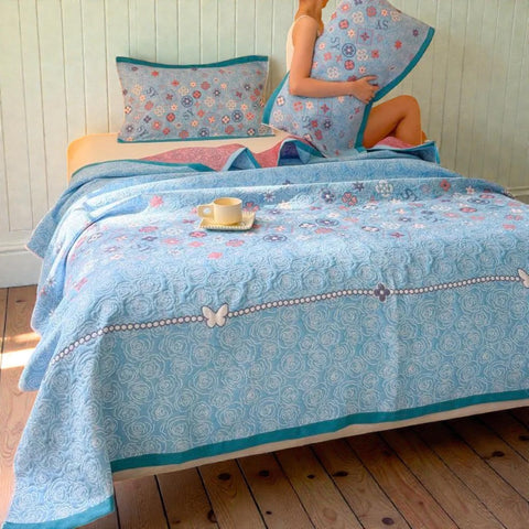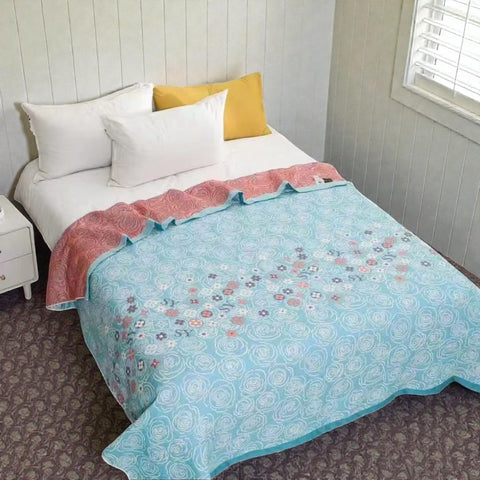 Brighten up your room with this Turquoise Floral Glam Gauze Blanket. Its soft jacquard texture and charming floral print offer an elegant yet cozy touch for any season. Whether you're lounging on the sofa or layering it on the bed, it brings comfort and decorative charm all in one.
